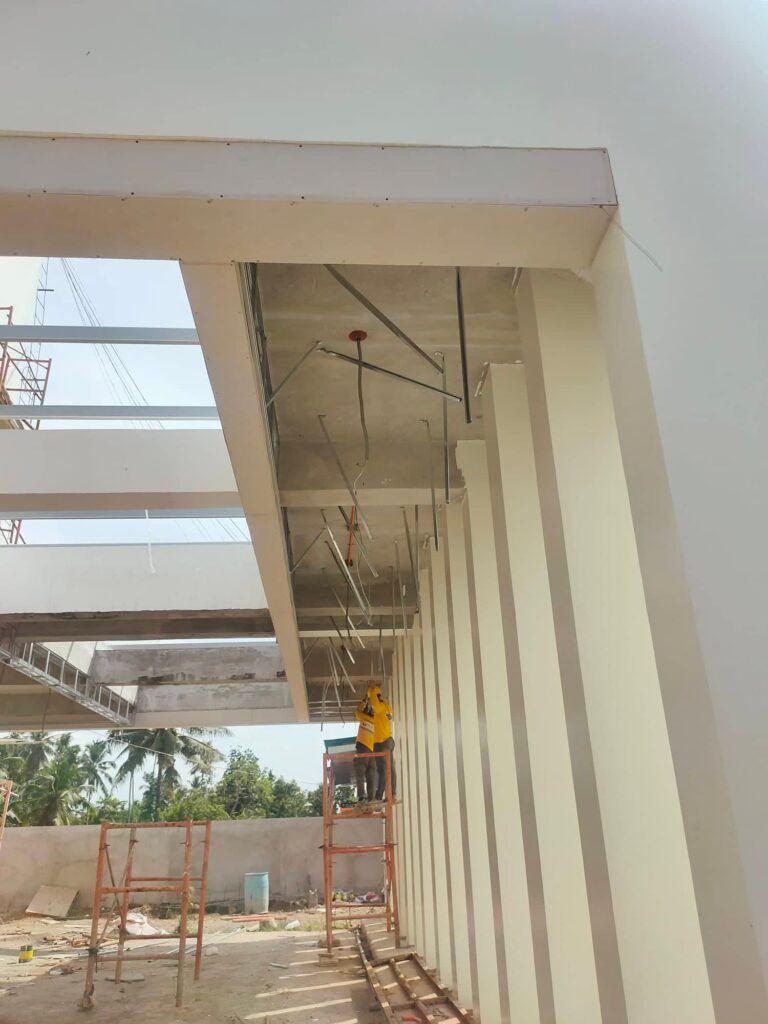 DCDC PROGRESS PHOTOS FOR THE MONTH OF JULY (CEILING WORKS) @ EMERGENCY ENTRANCE – July 28, 2022By Clarkie Tamin / September 4, 2022 1. Installation of ceiling framing, dropping and ficem board @ emergency entrance and drop off area.